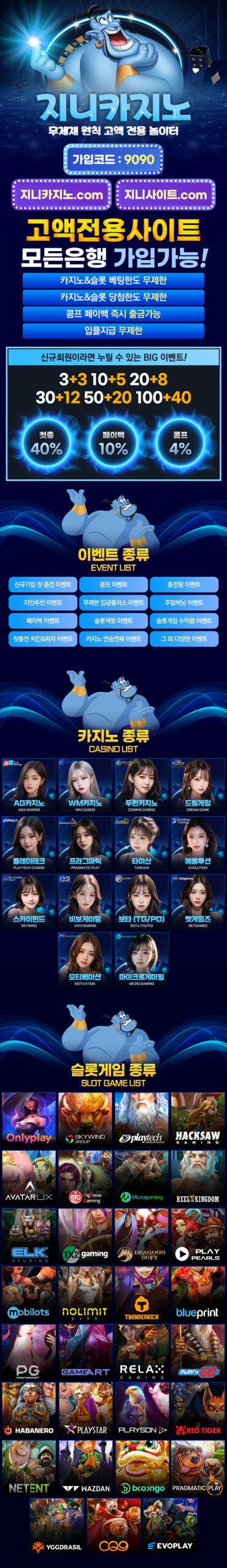 지니카지노 혜택 요약 정리